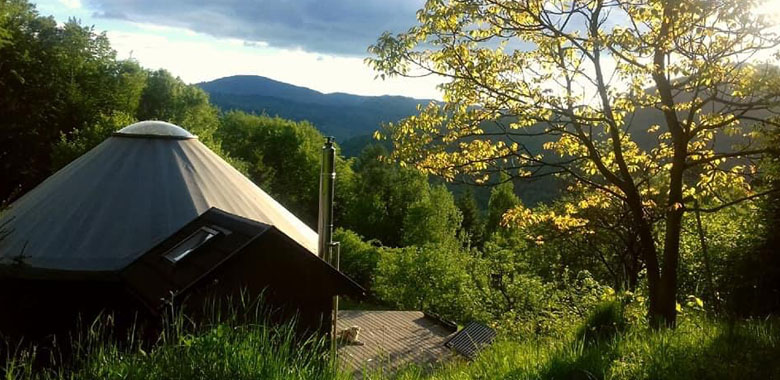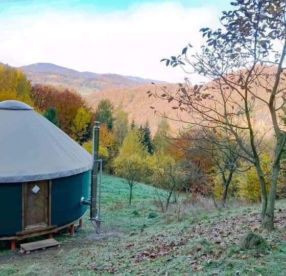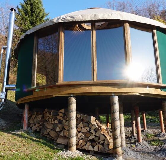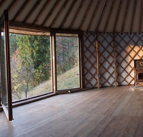 Jurta 35m2, może powstać wysoko w górach. Widok w środku jak i na zewnątrz najpierw oszołamia, później koi..